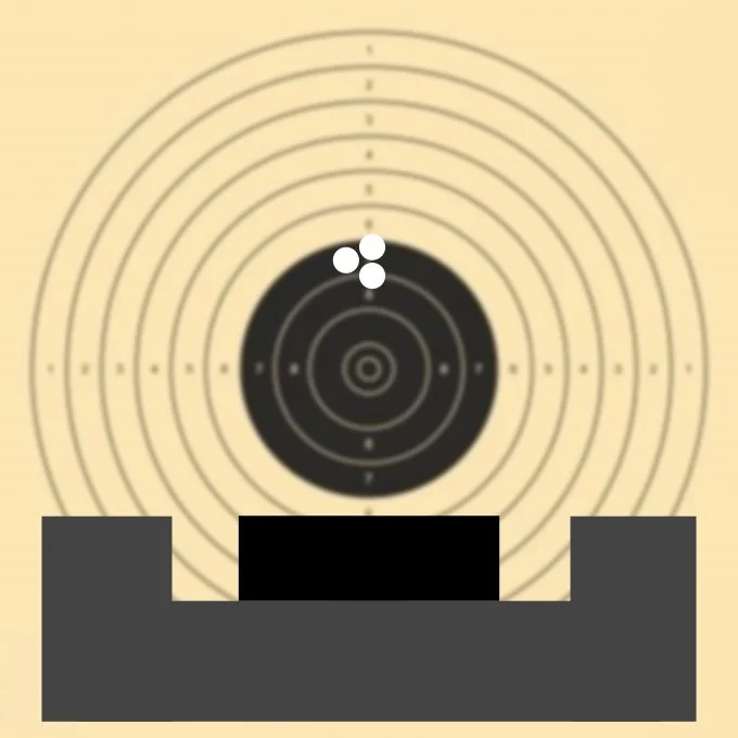 Hier ist das Auge auf die Scheibe fixiert. Dadurch bleibt die komplette Visierung unscharf und ein Zielfehler wird dadurch nicht erkannt.